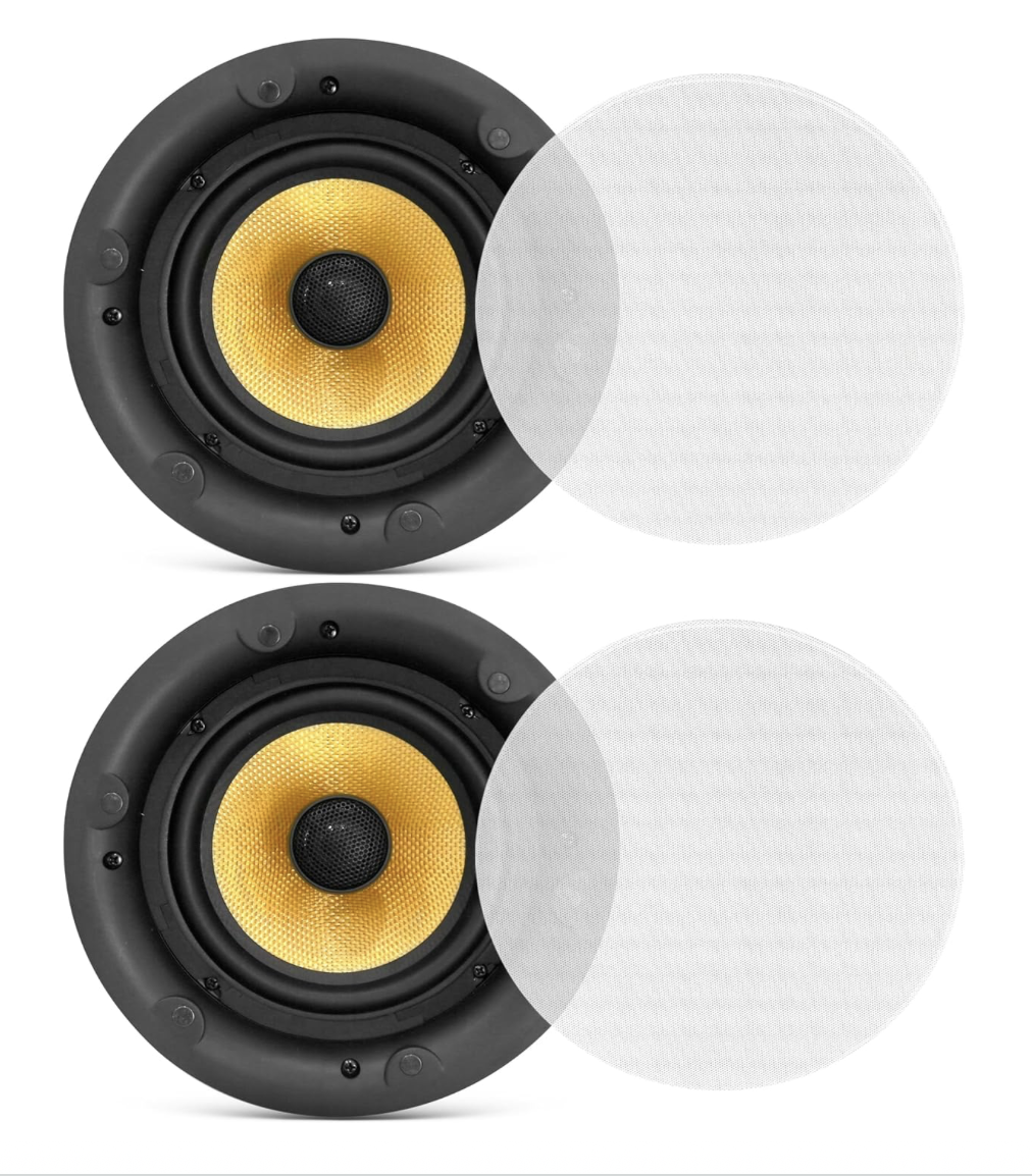 - Altavoces de techo de 6.5″ – Altavoz de rango completo de 2 vías (par) Diseño de montaje en techo de red cruzada electrónica incorporada 300 vatios PDIC68FG, negro